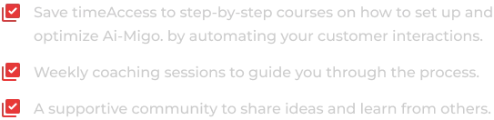 Free community to access short courses, weekly coaching sessions, and support for setting up your Ai-Migo.